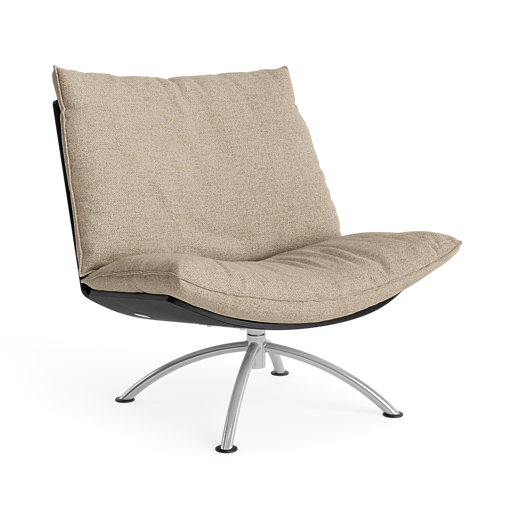 You choose the expression of the chair yourself, so that it suits your personal style. Choose between natural or black-painted oak from FSC®-certified forests (FSC® N002763) and a swivel base in either brushed or black-painted steel. The soft cushions with cold foam and down top can be covered with several different fabric variants or leather.