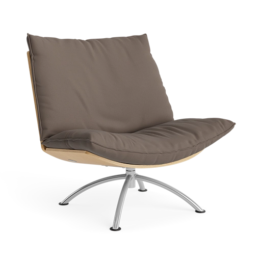 You choose the expression of the chair yourself, so that it suits your personal style. Choose between natural or black-painted oak from FSC®-certified forests (FSC® N002763) and a swivel base in either brushed or black-painted steel. The soft cushions with cold foam and down top can be covered with several different fabric variants or leather.