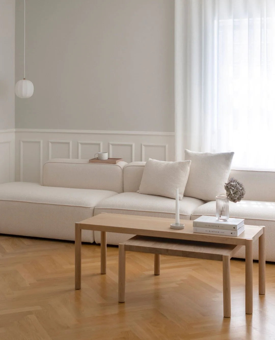 The TAMMI coffee tables are made in 4 different sizes in white oil or natural oil.